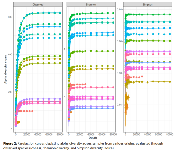 - Diversity analysis (.tsv, .pdf) – intra- and intersample diversity metrics with rarefaction curves