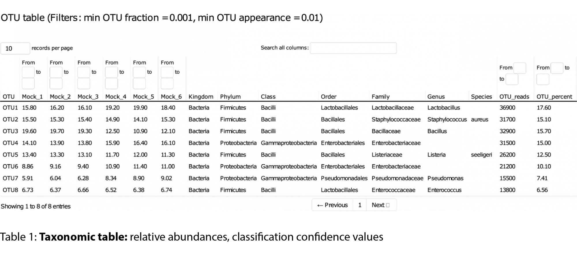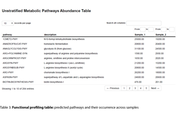 - Prediction of functional profiles based on identified taxa (.tsv, .html)