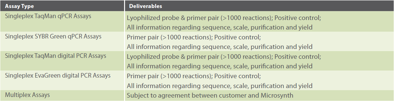 Les essais fonctionnels simplex pour la R&D (>1'000 réactions PCR) sont livrés dans les 2 à 3 semaines suivant la commande.