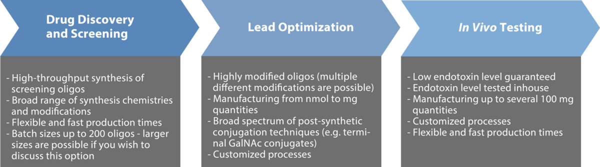 - Tailor-made and highly automated manufacturing processes create ASOs, siRNAs, and other oligonucleotides for potential therapeutic applications at attractive prices.